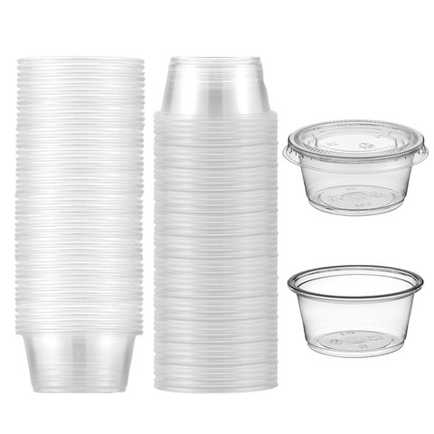 Sausbeker 1 2 4 5.5 Oz Wegwerp Gedeelte Saus Soufflé Beker Plastic Delicatessensalade Saus Bakjes Met Deksels